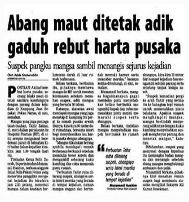 Lalai tulis wasiat punca bahagi harta tertangguh